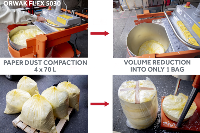 Tras leer un artículo sobre la compactación de hojas de té con el clásico compactador de bolsas Orwak FLEX 5030, un cliente japonés que buscaba una solución adecuada para la compactación de residuos de papel en polvo contactó con Orwak Japón.
